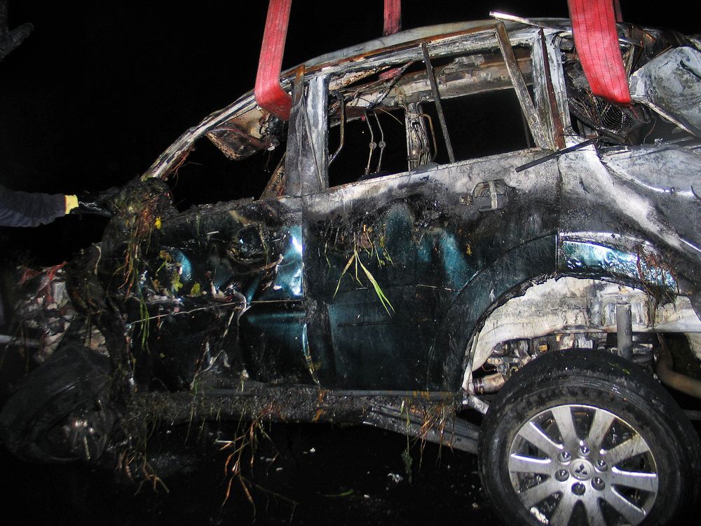 El conductor de un Mitsubishi Pajero adelanta a otro vehículo en una carretera secundaria. Aunque el adelantamiento terminó a tiempo, la conductora del Renault Twingo que circulaba en dirección opuesta creyó encontrarse en una situación de peligro y frenó de manera fuerte girando al mismo tiempo hacia el carril izquierdo. Allí colisionó frontalmente con el Mitsubishi que estaba retornando a su vía y que se incendió después del impacto.